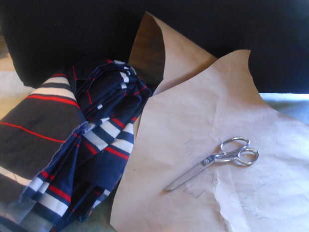 Imprimir el PDF que tiene las dimensiones de las piezas necesarias (sólo hay 2 piezas). Usando la regla y el transportador, crear una copia de tamaño completo de cada pieza. Esto me llevó más de la corte y la costura de la caja. Escriba "4 piezas de corte" en cada pieza. La pequeña pieza es la tapa y la pieza en forma impar más grande es el cuerpo de la caja.