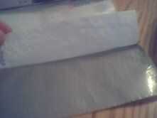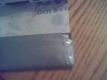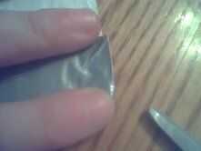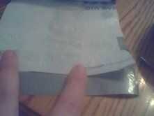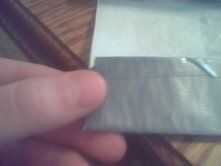 la puso uno de sus juegos en el doblez y marca que así un poco del cartucho se pegue hacia fuera. luego cortarlo. para la siguiente parte, siga las fotos tan de cerca como sea posible. usted será ser plegable poco de cinta sobre los extremos para que tus juegos no te pegajosos. hacerlo mismo con ambos lados. usted debe ser capaz de caber 4 juegos en este bolsillo. Si no es así, trate de volver a ajustar los lados así que usted puede.