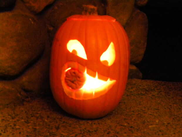 Esto es algo que hice para Halloween este año. Tenía una calabaza relativamente buena y no sabía qué hacer con él. Esto en realidad resultó para ser bastante fácil, sólo unos cortes y los dientes y los alumnos eran muy fáciles de hacer con un cuchillo especial "4 en 1". Este es un divertido lo que hay que tener en su pórche de entrada para Halloween y es seguro que una sonrisa de muchas personas.