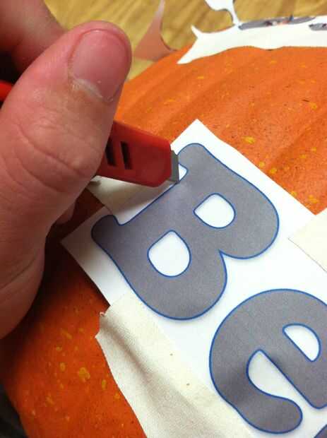 Luego lo trace en calabaza usando un cortador de cuchillo o caja de exacto.