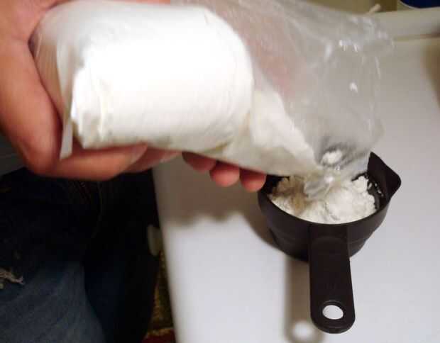 2. Mida 1 taza de la mezcla para pastel amarillo, usando una taza 1 taza de medir.