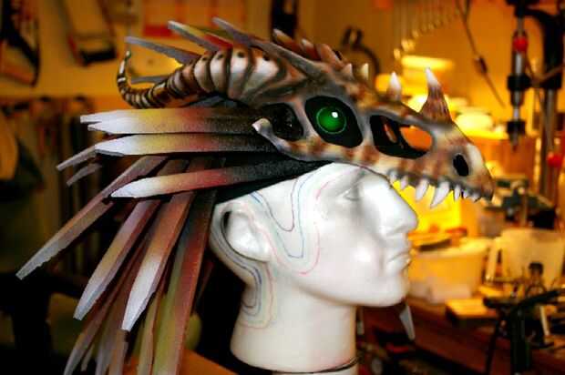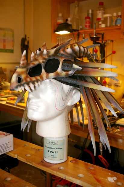 montara el cráneo en una vieja gorra de béisbol con el borde cortado para encajar la mandíbula.