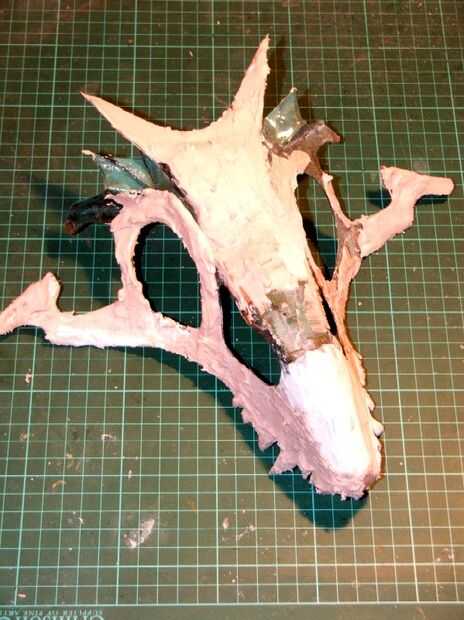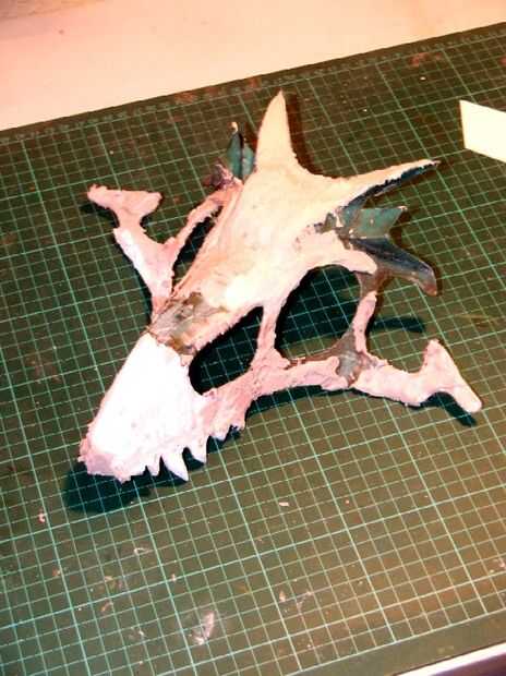 Una vez la P38 (Bondo) había endurecido de, utilicé la Dremel con un tambor de lijar áspero para suavizar los contornos, manteniendo una textura ligeramente áspera 'osea como' a él.