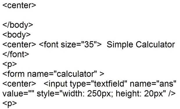 Ahora su tiempo para modificar su cuerpo, ahora en primer lugar tienes que hacer todo en el centro para hacer centro, etiqueta y después de que utilizaremos la etiqueta en la que se escribe nombre de la calculadora, aquí estoy usando nombre de "Simple calculadora". Y después de se agregue código para el resultado de acciones realizadas, es decir, multiplicación, adición, división etc....