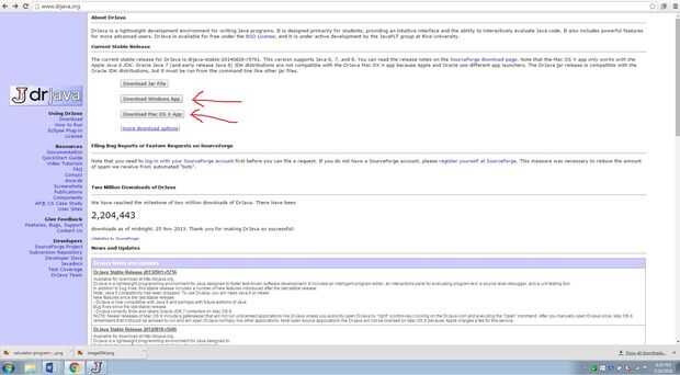 Se escriben todos los programas de software en entornos de desarrollo, programas hechos específicamente para crear y compilar software. Para el lenguaje de programación que estamos usando, Java, el programa Dr. Java es un programa introductorio excelente y simple utilizar. Empiece por descargar el programa de www.drjava.org y seleccionando la aplicación de windows o mac osx app dependiendo del tipo de ordenador.