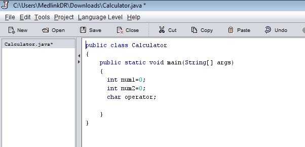 Como se mencionó en el último paso, todos los métodos siguen la estructura de la IPO, de entrada, proceso, estructura de salida. Esto significa que en definitiva todos los métodos de reciban algún tipo de entrada, realizan un proceso y devolución una salida. Primero vamos a declarar las entradas. Entradas pueden ser de diferentes tipos de datos, así que tenemos que ser específicos en nuestra declaración. Los tipos de datos principales son int (1, 2, 3...), doble (es decir, 1.0 2.7, 0.8...), char(a,b,c,d,+,-,#...) y cadena (Hola, sí, Hola, la palabra...). Para nuestro ejemplo necesitamos declarar dos números de tipo int y un operador de tipo char que implicará la operación que queremos realizar. También una cosa que debemos destacar son el uso del punto y coma. En la codificación de estos sirven casi como períodos y significar roturas en la línea del ordenador leer el código.