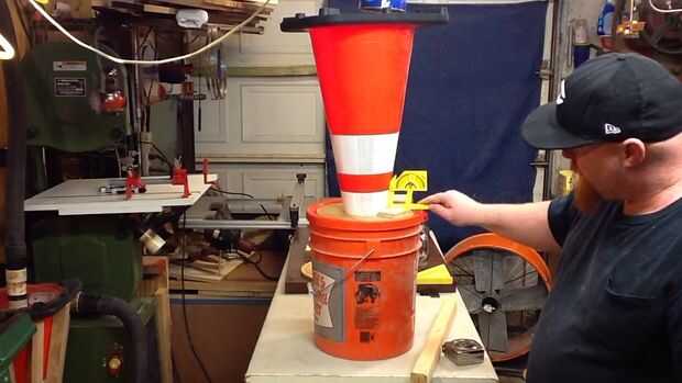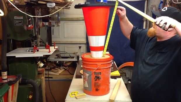 Ahora que tienes las tablas cortar ese apoyo el cono tendrá que colocar el cono en la cubeta boca abajo sobre el cubo para medir el ángulo.