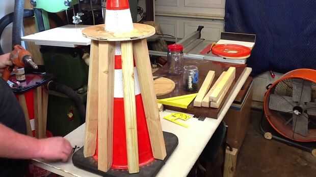 Coloque un bloque de apoyo en su lugar y atornille un tornillo de 2 pulgadas a través de la madera contrachapada en el apoyo y luego hacerlo para 7 de ellos dejando a uno del coner unos hacia fuera para más tarde