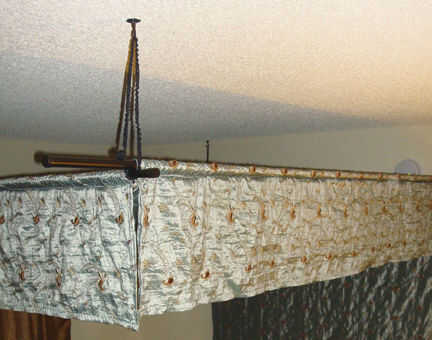 Deslice las barras de cuatro cortina a través de las mangas correr Cañas lazos de cuerda. Dos rótulas se ejecutarán a través de cada lazo de la cuerda. Ajustar su canopy para que quede uniformemente a través de las varillas, inserte la varilla de modo que pasan a través de los bucles de una pulgada o menos. Remates podrían añadirse a los extremos de las barras si lo desea.