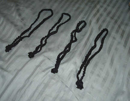 En última instancia debe cambiarse las cuerdas que he mostrado, pero lo importante aquí es hacer cada uno de los cuatro lazos del mismo tamaño. He decidido suspender nuestro pabellón 10" desde el techo, por lo tanto, 4 – 10" bucles de cuerda atado y cortado.