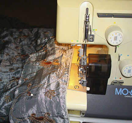Cubrió paneles B Panel A con 'derecho' lados juntos, luego se unió a los paneles con mi máquina overlock, también comúnmente se llama una remalladora. La remalladora es grande porque se recorta y se une a la costura en un solo movimiento, de lo contrario tendrá que rodar los bordes sin acabar bajo y coser con una máquina de costura recta.
