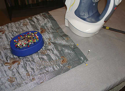 He encontrado que usar plancha y tabla de planchar es muy útil durante la preparación de los tres lados abiertos de cada panel lateral (C y D) para la costura. Si se corta el patrón correctamente, le han permitido una pulgada en todos los bordes de acabado o fijación de paneles. Doblez de hierro cada costura subsidio plana en 1" tuck 1/2 de borde bajo, hierro y coser con la máquina de puntada recta.