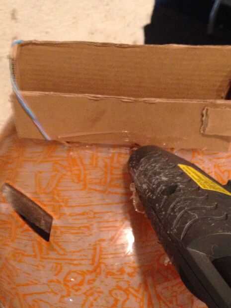 Utilice pegamento caliente (una cantidad enorme de él) para fijar el caso para el casco Asegúrese de que cuando se seca te puede levantar el casco con el caso