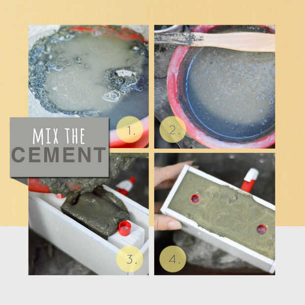 Ahora la diversión parte! Mezclar el concreto según la las instrucciones en el envase y agregar al molde, asegurándose de obtener concreto en los pequeños rincones y grietas. No tengo una mesa vibratoria para eliminar burbujas de aire, que fui con un combo de escuchas todo el exterior del molde levantándolo un poco y lo que le a caer de nuevo sobre la mesa. Una vez que estaba feliz de que salieron todas las burbujas lo pongo en alguna parte plana y de la manera de secar.