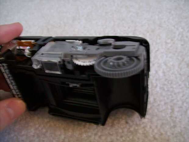 bien lo estaba molestando con una cámara desechable el otro día y descubrí que hay un pequeño engranaje bajo la cubierta de la cámara que si usted gire a la derecha hará que la cámara tome infinate tiros.ADVERTENCIA: Peligro de descarga eléctrica, y