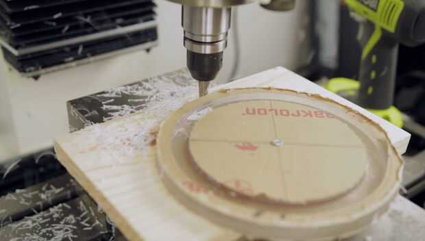 Perfore un orificio piloto en el centro de mi esquema que dibujó anteriormente y seguir con el mismo diámetro como mi fresa que es 5/8".
