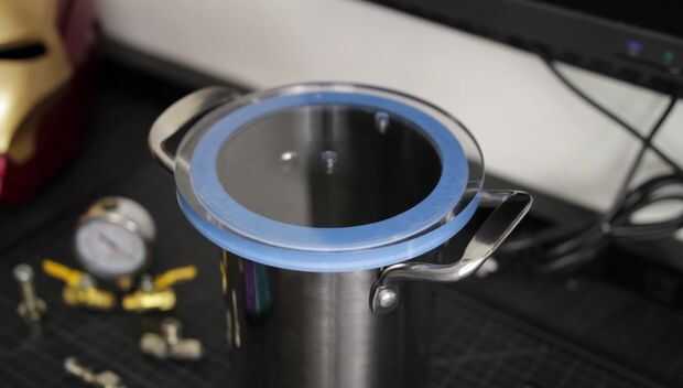I aplicar vaselina, como agente de liberación ya que es adhesivo silicona base y poner la tapa de la olla en la silicona que acaba de aplicar.