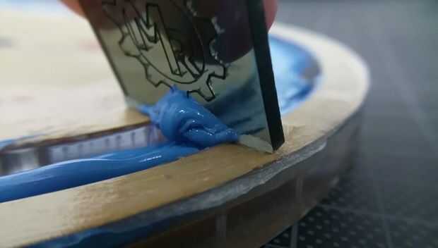 Solicitar la silicona RTV y asegúrese de que aplicar una cantidad abundante. Una vez aplicado a continuación, utilizar el láser corta para ajustar la altura de la 1ra capa de silicona.