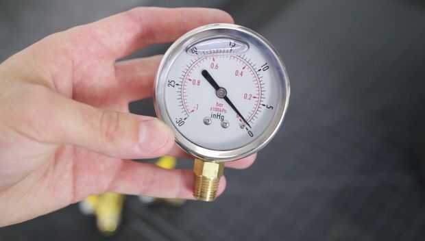 Agarra el manómetro de vacío y colocar a la cabeza a granel más lejos del centro.