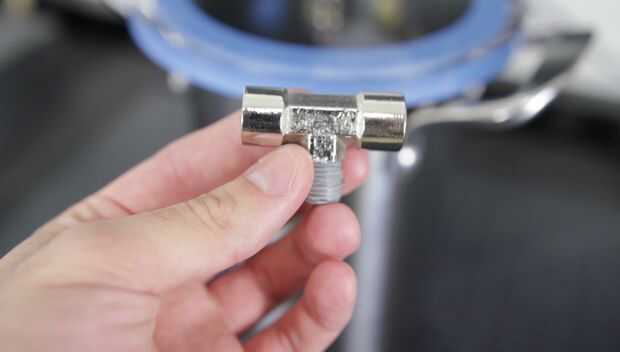 Me fije ambas válvulas de bola ¼" npt para la conexión en t y apriete hasta firmemente alinearlos con la perilla hacia la parte superior.