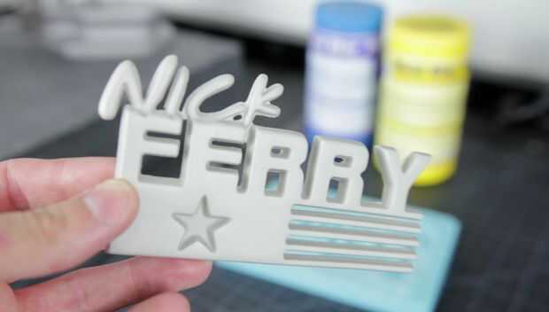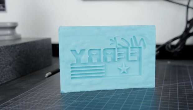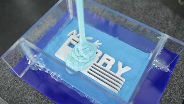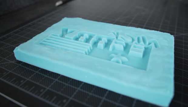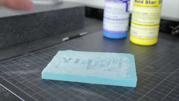 Una vez que el vacío ha desgasificado totalmente la silicona vierte la silicona en una caja de moldeo con un logo impreso 3D que hice para mi amigo Nick Ferry que tiene un canal en youtube aquí.