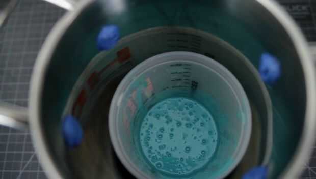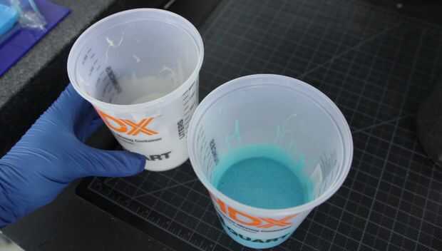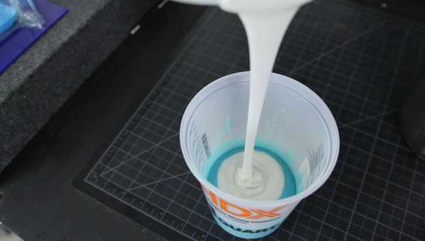 Yo agarre mi parte A y parte B platino silicona y mezcla vigorosamente. Una vez completamente mezclado puse el contenedor en la cámara y tirar mi vacío.