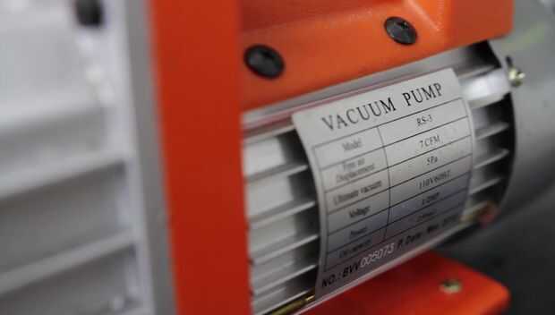 Estoy utilizando una bomba de vacío de 7 CFM para mi cámara, pero usted puede ir con una unidad mucho menor del cfm.