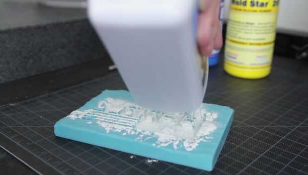 Agarra talco y aplicarlo a mi molde. Esto hace que la resina absorber los detalles más finos y reduce las burbujas en la resina especialmente en las esquinas.
