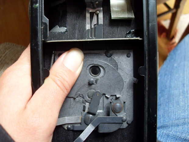 Ese destornillador pequeño y desatornillar el cuerpo de la cámara. Una vez que usted está mirando el cuerpo abierto de su cámara, debe localizar el obturador. El disparador es la pieza que abre y cierra rápidamente cuando usted presione el disparador para tomar una fotografía. Cada cámara se ve un poco diferente, así que no te preocupes si es difícil de encontrar-mantenga mirando. Una vez has localizado el obturador, usted necesita encontrar una manera de quitar o mantener abierto con cinta (si no quieres alterar permanentemente la cámara).