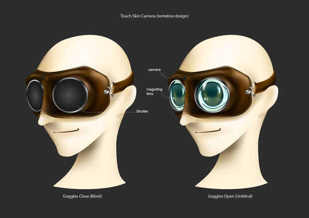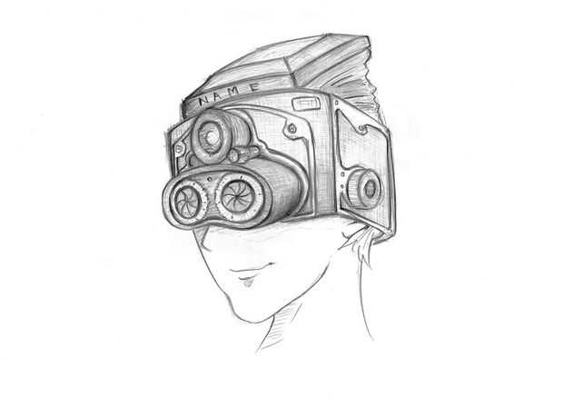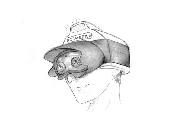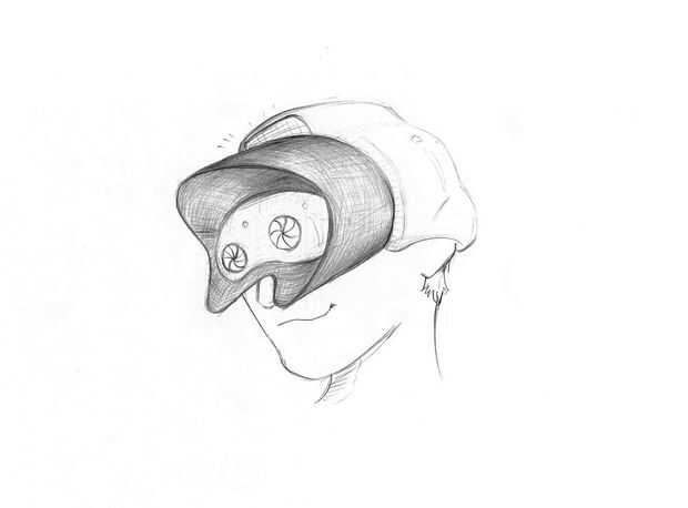 A continuación he pensado convertir toda la cabeza a una cámara en lugar de sólo el ojo. En este sentido, los ojos serían las lentes de la cámara y el cabeza, el cerebro de la persona es el cuerpo, el cerebro de la cámara. I en comparación con la idea de casco cámara de las gafas cámara y había creado la diferente evolución de diseño posible.
