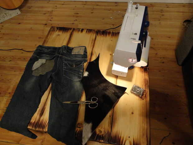 Un blog de http://thrifty-little.blogspot.co.uk/. Necesitas: un pedazo de cuero, una máquina de coser, algunos postes de madera, una aguja gruesa y algunas tizas de marcado.Paso 1: Paso 1: colocar la tela.He utilizado cuero rojo de una falda de tiend