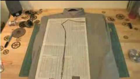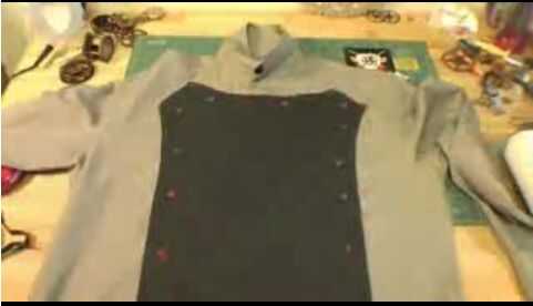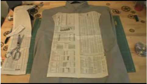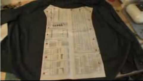 Tomar algunos tiza y traza un patrón de la placa de pecho al frente de la camisa.