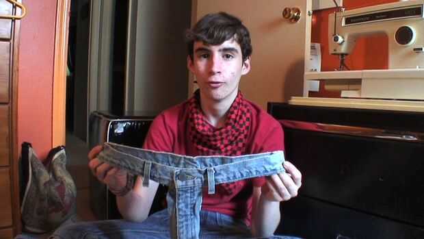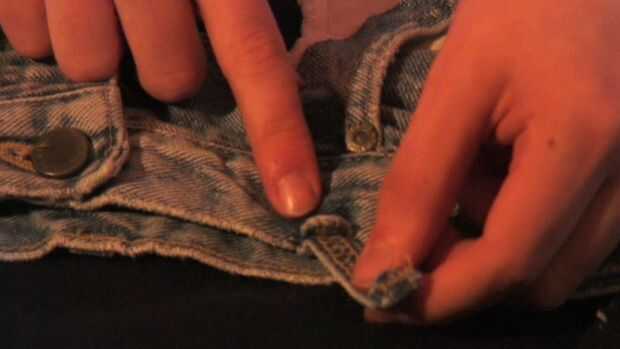 Corte alrededor de la cintura y abajo alrededor de la cremallera, asegurándose de dejar suficiente espacio para coser. Si los jeans tienen un logotipo en la parte posterior, estafan con un descosedor.