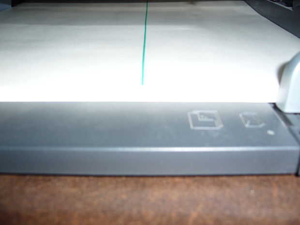 Ahora ponemos el papel de la transferencia de hierro en la impresora. Asegúrese de que se alimenta correctamente en la impresora que imprime en el lado correcto del papel. Una vez que lo tienes impreso Asegúrese de que la tinta esté seca y luego recortar dejando aproximadamente 1/4 en la frontera alrededor del borde de la imagen.
