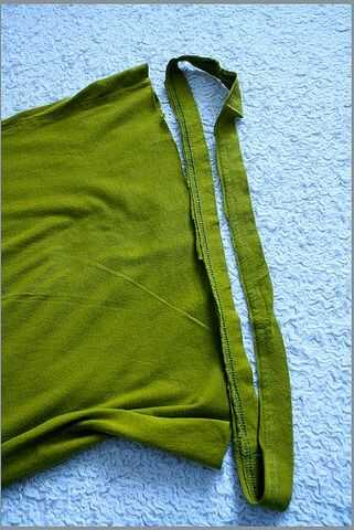 Pone la camiseta de su selección sobre una superficie plana. Inicio y apagado cortando el dobladillo (la parte inferior de la camisa).