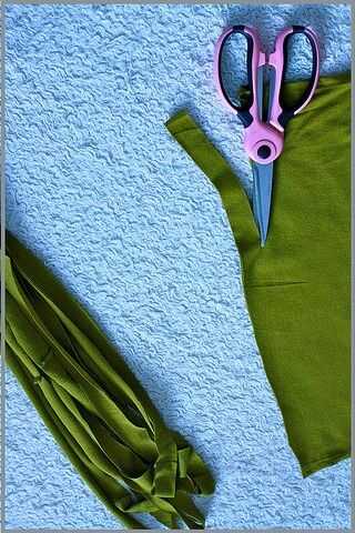 Principio en la parte inferior de la camisa y su forma de trabajo, cortar tiras de 1 pulgada para hacer loop o cualquier ancho que desee. Sólo depende de cómo gruesa quieras tu collar.