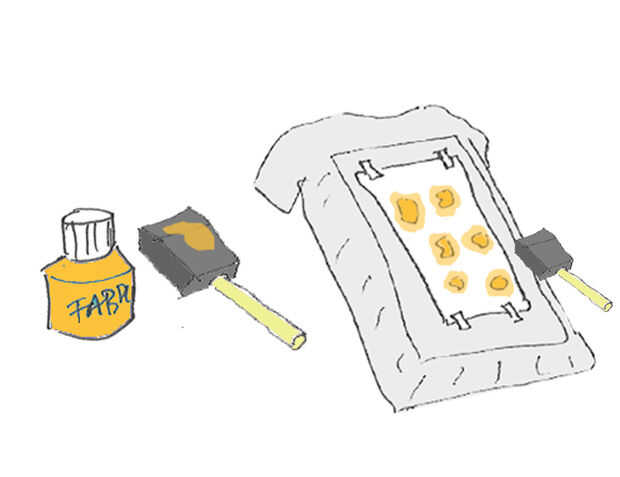 Aplicar la pintura de la tela a la camiseta con presión firme. No use movimiento de cepillado ya que pueden pelar arriba a los lados de su plantilla y crear un límite irregular. No queremos!