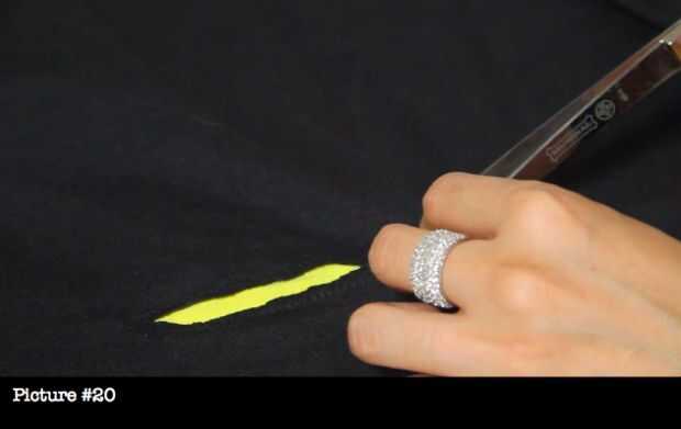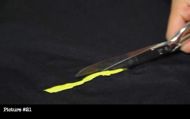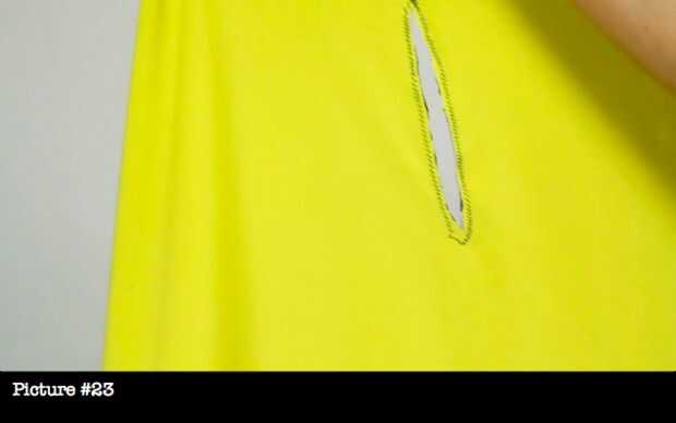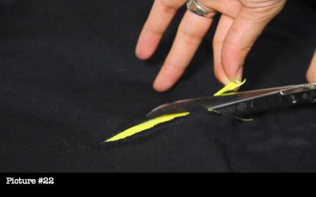 Cuadro #20, cuadro #21 y cuadro #22: Ahora cortamos a la tela excedente amarillo
