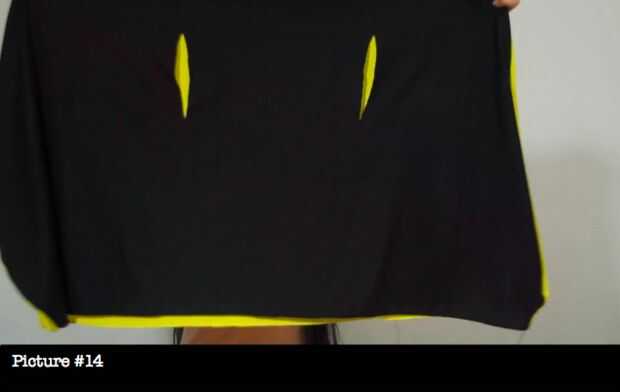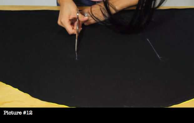 Corta donde irá el brazo y tiene marcado recientemente, pero solo un lado de la tela, sería la tela negra.