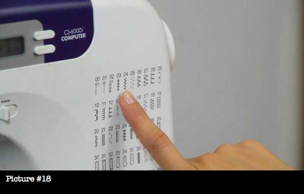 #18 y #19 del cuadro de la imagen: Para coser el brazo parte elegir el zig zag de la máquina de seweing.