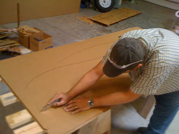 Usar una navaja para cortar los patrones. Puesto que es difícil de cortar cartón, puedes hacer un corte inicial que sólo rompe la superficie de la cartulina y luego volver atrás y cortar completamente a través. Esto puede ayudar a hacer cortes mal.