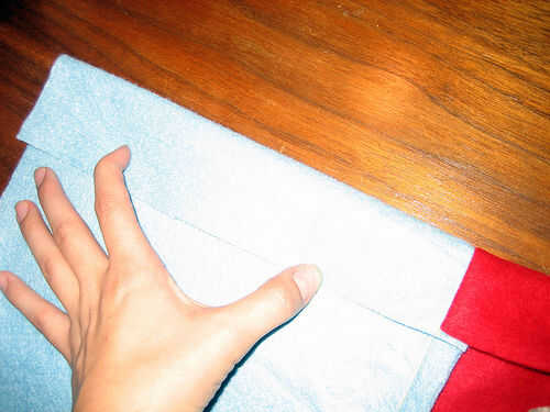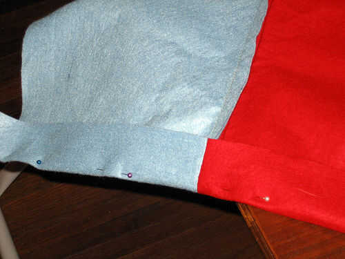 Doble dos pulgadas en la parte superior (en el lado equivocado de la tela) y pin cerca de la tapa. Querrá volver a coser alrededor de 1/2 pulgada del extremo del doblez, si tiene sentido.