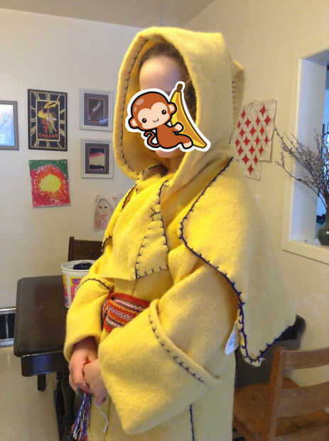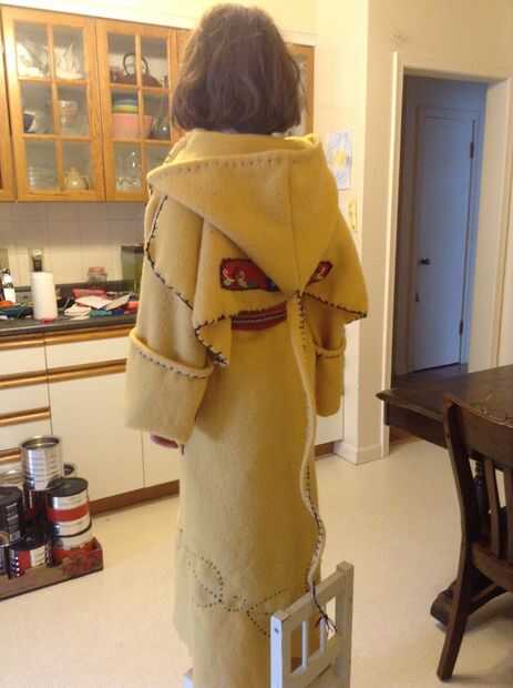 La capa amarilla la primera capa que he hecho. Tiene un poco de manta costura. No he incluido un tutorial para coser la manta, pero no son difíciles de rastrear. También he añadido algunos bordados en la parte inferior. Os dejo para terminar la capa según su propio gusto. Yo no tenía suficiente manta para hacer un cinturón de la misma tela, por lo que vamos a utilizar y hoja de Asunción cerró. He visto los abrigos con botones así.
