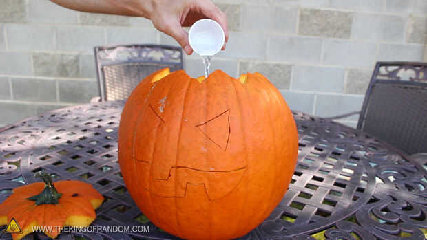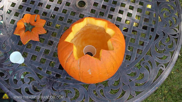 Un gas muy inflamable (acetileno) se produce dentro de una cáscara de calabaza previamente tallada mediante la mezcla de agua y CaC2. Cuando se enciende el gas, la presión interior construye rápidamente, obligando a las piezas talladas a explosión hacia fuera dramáticamente.