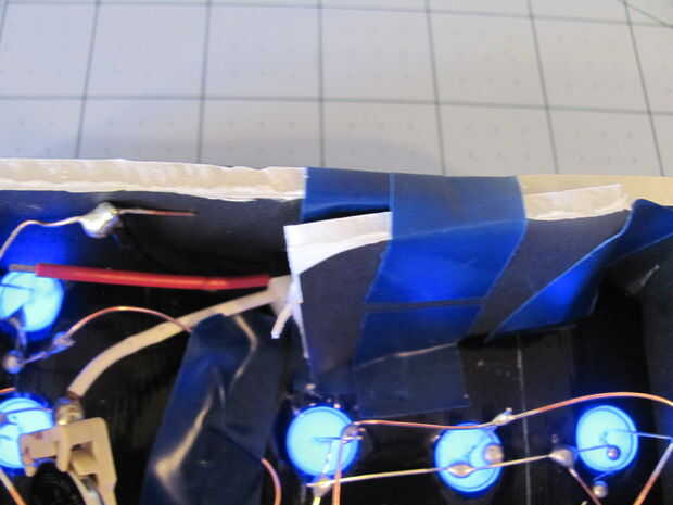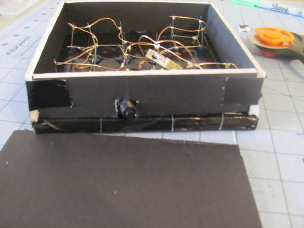 Cortar 2 2'' x 4'' 2 2'' x6'' y 1 6'' x 6'' pedazos de tablero de la espuma, cortar un agujero en el medio de 2'' x 4'' algo de espuma para el interruptor, todos los lados de la cinta en poner el interruptor en el agujero y cinta hacia abajo. Vestíos de la parte superior, cubierta con cinta y listo!