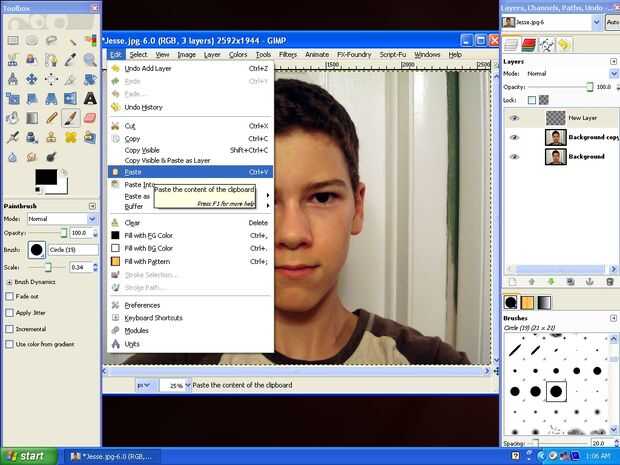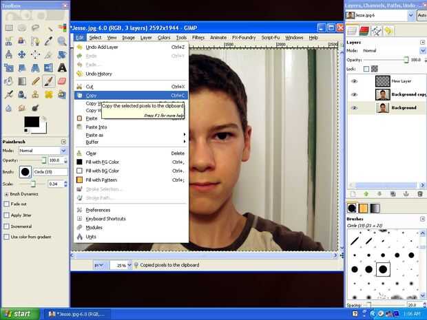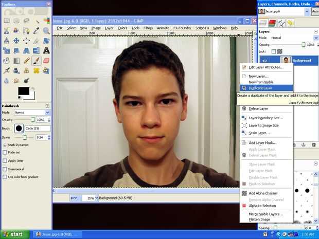 Gimp abierto haciendo clic en el acceso directo en el escritorio. Busque la imagen su planificación sobre la edición haciendo clic en archivo > abrir. Una vez hayas abierto la imagen, duplicar la imagen de fondo haciendo clic en la capa de fondo en la ventana de capas y haga clic en el capa duplicada. A continuación, cree una nueva capa en la parte superior ambos haciendo clic en la pieza blanca de papel en la esquina inferior izquierda del cuadro de capas. Ahora haga clic en el capa de fondo para cambiar a ella, luego en la ventana de edición de imágenes, vaya a Edición > Copiar o haga clic derecho en la imagen y haga clic en Editar > Copiar. Para pegar en la nueva capa, nueva capa en la ventana de capas para cambiar a ella, haga clic en Edición > pegar. Anclaje hacia abajo haciendo clic en el icono de ancla en la parte inferior de la ventana de capas. Esto asegura que la nueva capa.