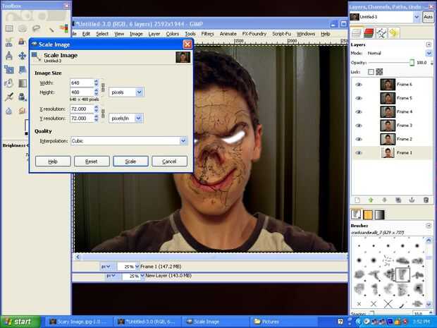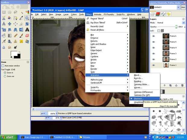 Me parece mejor previsualizar la animación, pero su imagen es demasiado grande para caber en la ventana de vista previa, así que necesitarás cambiar su tamaño haciendo clic en imagen > imagen de la escala. Le dan una resolución de 640 x 480 vinculando la anchura y la altura junto (icono de vínculo), escribir 640 en el cuadro ancho y haga clic una vez y por una vez en las flechas al lado de la anchura. Haga clic en escala. Va a ser mucho más pequeño dependiendo de cuán grande era originalmente así que pulse la tecla plus en el teclado o utilice la herramienta de zoom para acercar. Para reproducir la animación, haga clic en filtros > Animación > reproducción, a continuación, haga clic en el botón play. A pesar de lazo la animación, no lazo en el resultado. Cuando has previsualizarlo, salir por la ventana de reproducción y si quieres, cambiar el tamaño de la imagen a la resolución original haciendo clic en Edición > Deshacer. Usted necesitará alejar otra vez. Tenga en cuenta, sin embargo, que guardar la animación en su resolución original probablemente hará lento por lo que le aconsejo que mantenga la resolución de 640 x 480.
