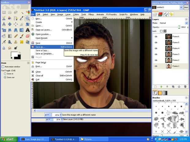 Guardar la animación en su computador haciendo clic en archivo > Guardar como... y dándole un nombre con la extensión ".gif" sin las comillas. Debe saltar una ventana con algunas opciones. Marque el círculo al lado de "Guardar como animación" y luego haga clic en "Exportar". Se abrirá otra ventana donde debe desmarcar la opción "Repetir por siempre". Haga clic en guardar. Ahora, donde lo guardó, la previsualización de la imagen se verá normal, pero una vez que alguien hace clic en él, transformará. No olvide que su animación miedosa puede ser cualquier cosa que usted puede pensar, morphing no sólo una cara. Sólo elegí porque es fácil y eficaz.