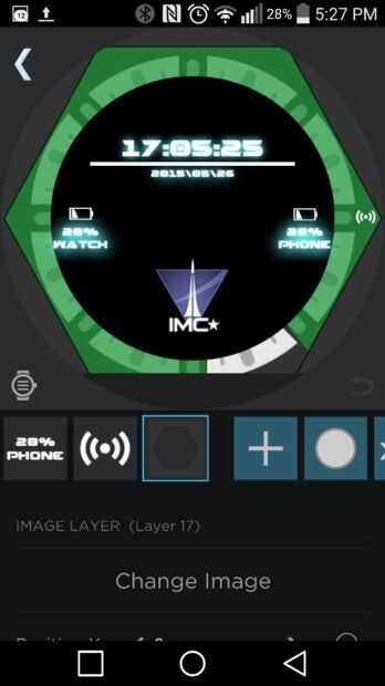 En este punto tienes la cara de reloj lista para cargarse en el reloj. Pulse el botón back. (A diferencia de otras aplicaciones que permiten crear caras de reloj personalizado, auto relojero salva la cara del reloj).