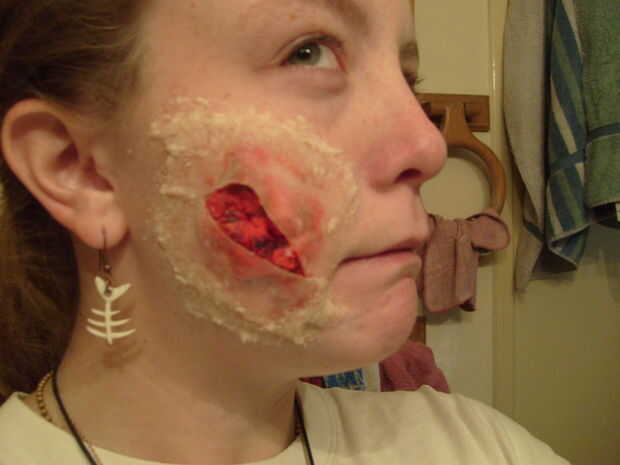 La cera y tire hacia fuera, lejos de la piel de gelatina y sobre su cara, así que empieza a parecerse un poco a esto.